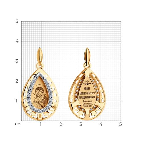Иконка из золота с лазерной обработкой с фианитами SOKOLOV 104104