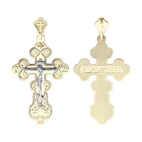 Крест из комбинированного золота с гравировкой SOKOLOV 121024