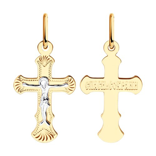 Крест из комбинированного золота с гравировкой SOKOLOV 121145