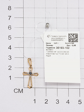 Крест из золота Алькор 35193-102