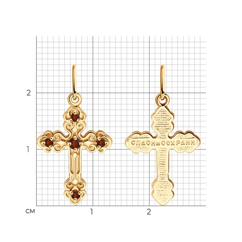 Подвеска крест золотая пробы 585 с гранатом Diamant 51-330-01331-1