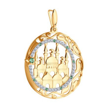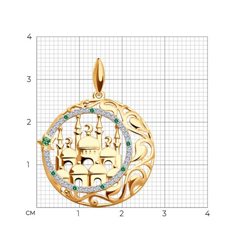 Подвеска мусульманская из золота с зелеными фианитами SOKOLOV 034825