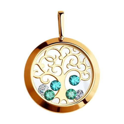 Подвеска из золота с минеральным стеклом и бесцветными и зелеными фианитами SOKOLOV 035074