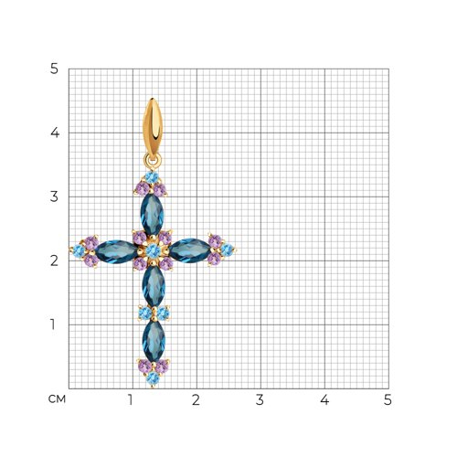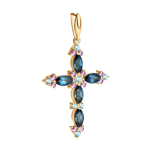Подвеска Крест золотая пробы 585 с миксом камней SOKOLOV 731215