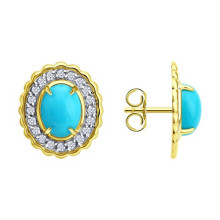 Серьги пусеты золотые пробы 585 с бирюзой SOKOLOV 729244-2