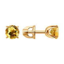 Серьги пусеты золотые пробы 585 с цитрином SOKOLOV 729404