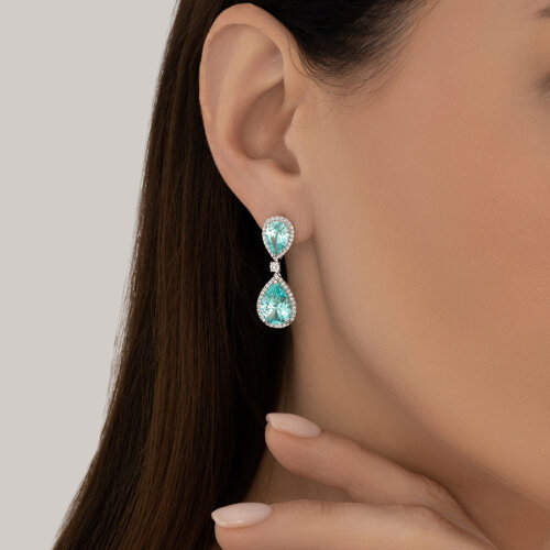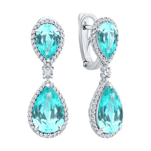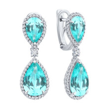 Серьги из белого золота с бриллиантами выращенными и турмалинами синтетическими параиба SOKOLOV 6024502-3-5
