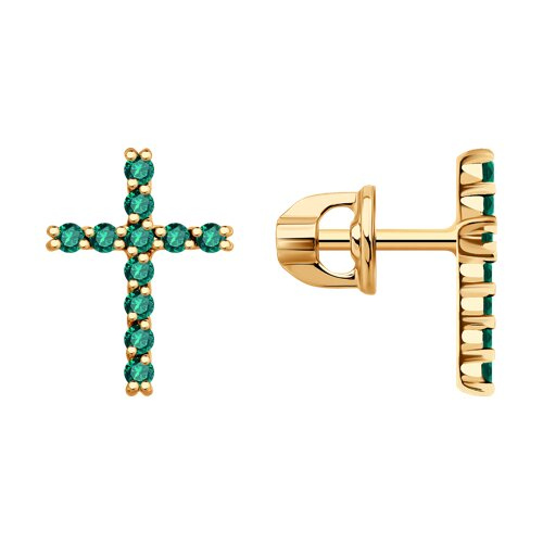 Серьги золотые пробы 585 с изумрудом гидротермальным SOKOLOV 729424