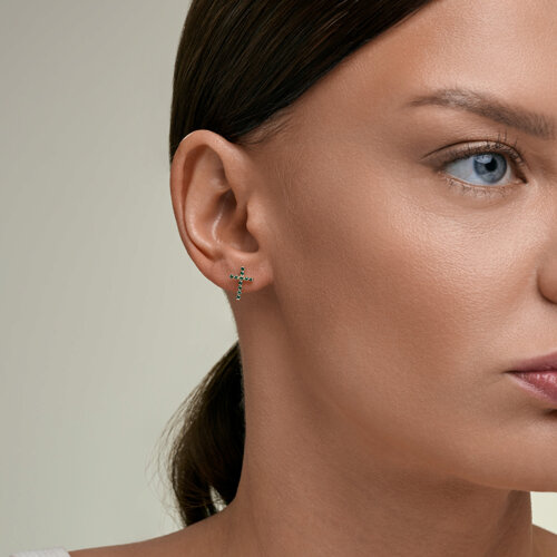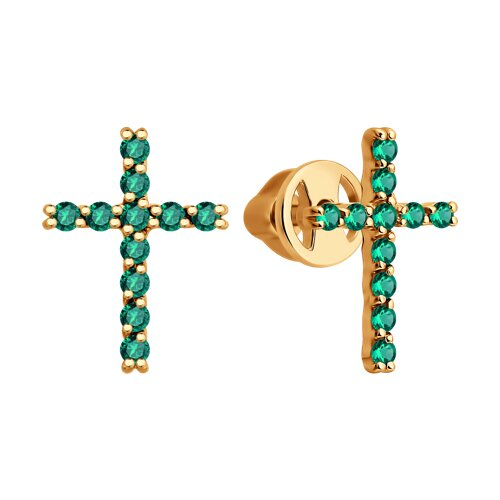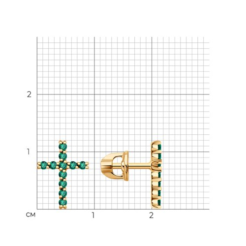 Серьги пусеты золотые пробы 585 с изумрудом гидротермальным SOKOLOV 729411