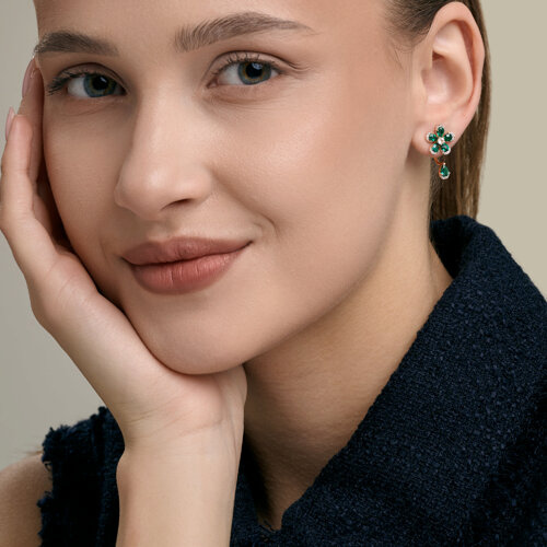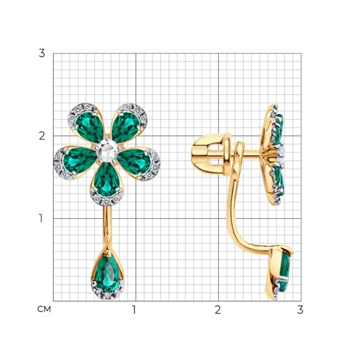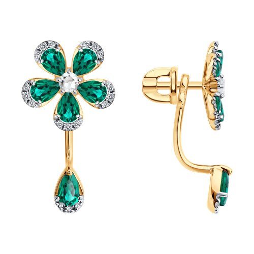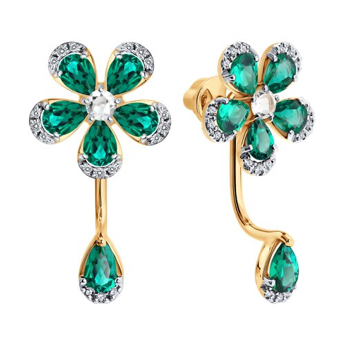 Серьги золотые пробы 585 с изумрудом гидротермальным SOKOLOV 729394