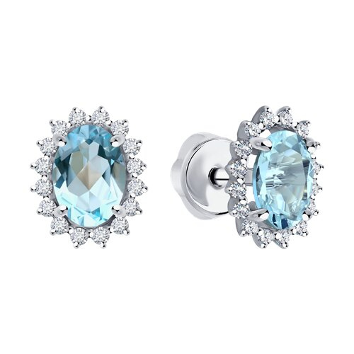 Серьги из белого золота с бриллиантами и аквамаринами SOKOLOV 6024375-3