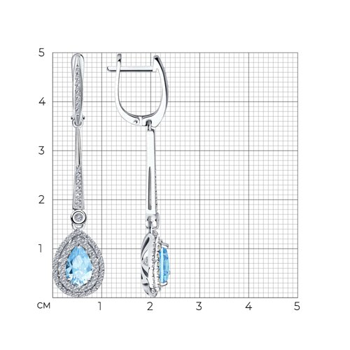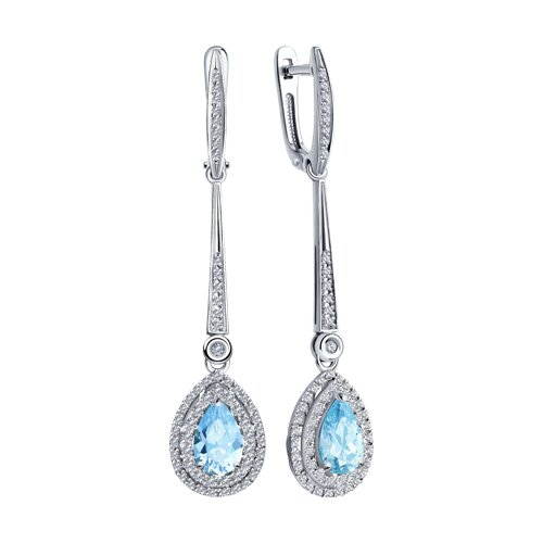 Серьги из белого золота с бриллиантами и аквамарином SOKOLOV 6024343-3