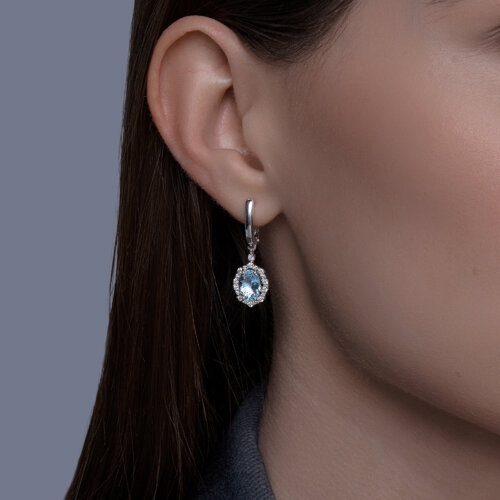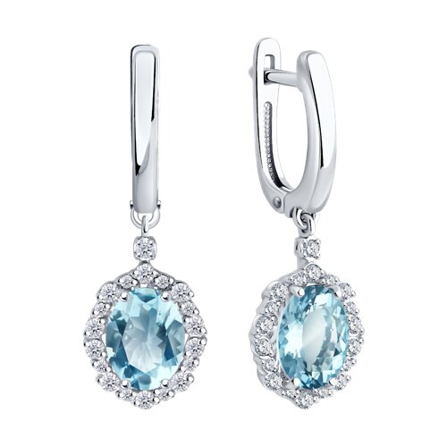 Серьги из белого золота с бриллиантами и аквамарином SOKOLOV 6024454-3