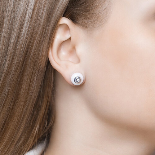 Серьги из белого золота с бриллиантами и белыми керамическими вставками SOKOLOV 6025059