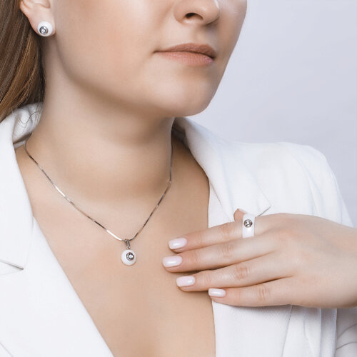 Керамическое кольцо с белым золотом и бриллиантом SOKOLOV 6015014
