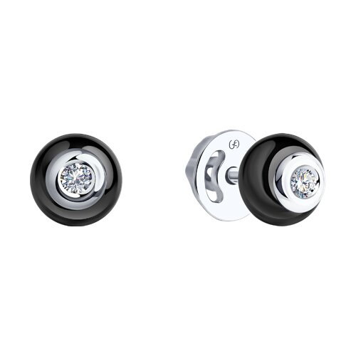 Серьги из белого золота с бриллиантами и чёрными керамическими вставками SOKOLOV 6025071