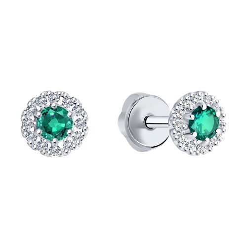 Серьги из белого золота с бриллиантами и изумрудами SOKOLOV 3020507-3