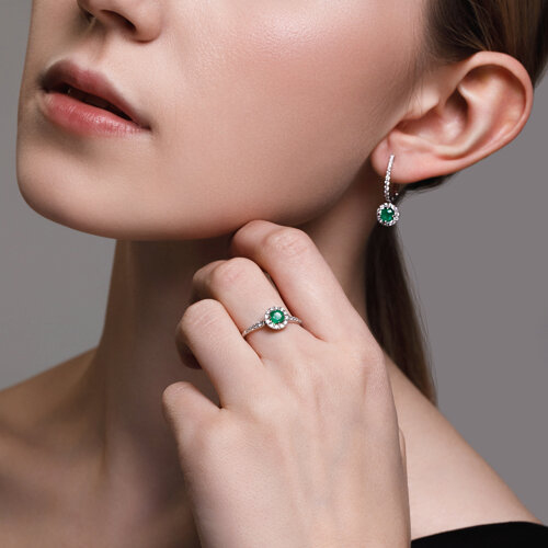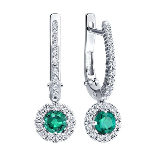 Серьги из белого золота с бриллиантами и изумрудами SOKOLOV 3020520-3
