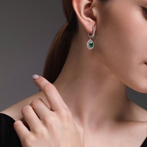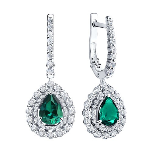Серьги из белого золота с бриллиантами и изумрудами SOKOLOV 3020560-3