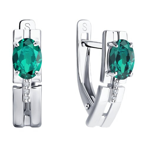 Серьги из белого золота с бриллиантами и изумрудами SOKOLOV 3020605-3