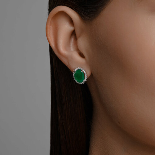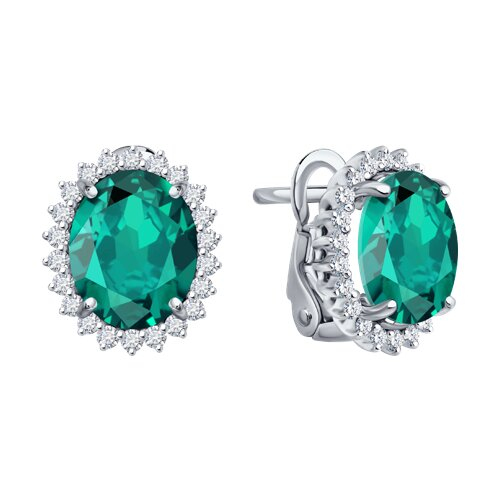 Серьги из белого золота с бриллиантами и изумрудами SOKOLOV 3020648-3