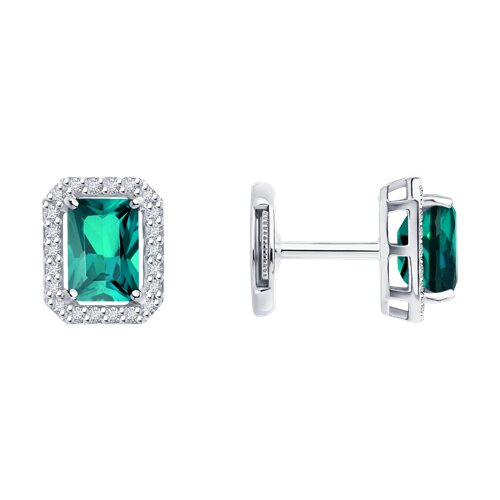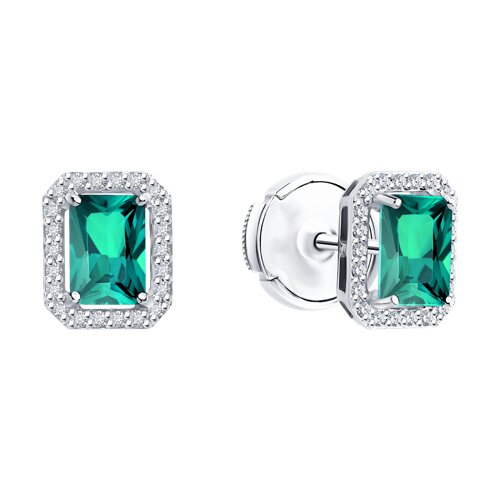 Серьги из белого золота с бриллиантами и изумрудами SOKOLOV 3020713-3