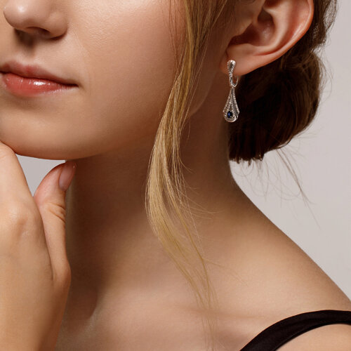 Серьги из белого золота с бриллиантами и сапфирами SOKOLOV 2021150-3