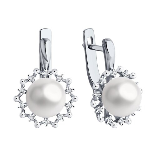 Серьги из белого золота с бриллиантами и жемчугом Diamant 52-220-02091-1
