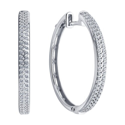 Серьги кольца из белого золота с бриллиантами SOKOLOV 1020520