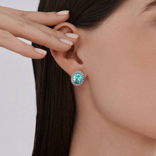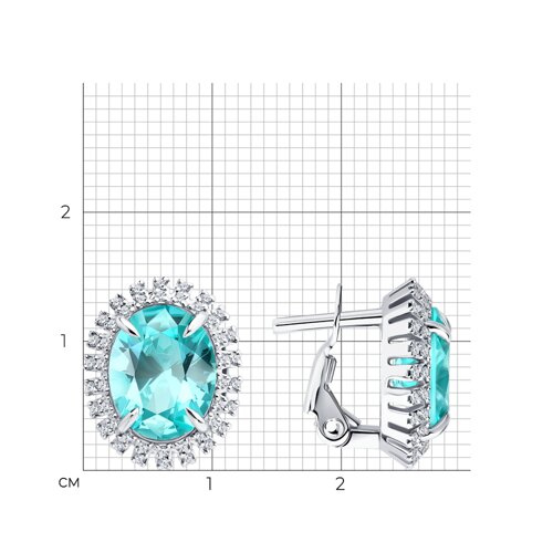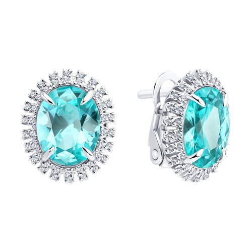 Серьги из белого золота с бриллиантами выращенными и турмалинами синтетическими параиба SOKOLOV 6024496-3-5