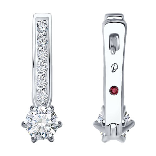 Серьги из белого золота с бриллиантом выращенным и рубином Diamant 52-220-02485-1