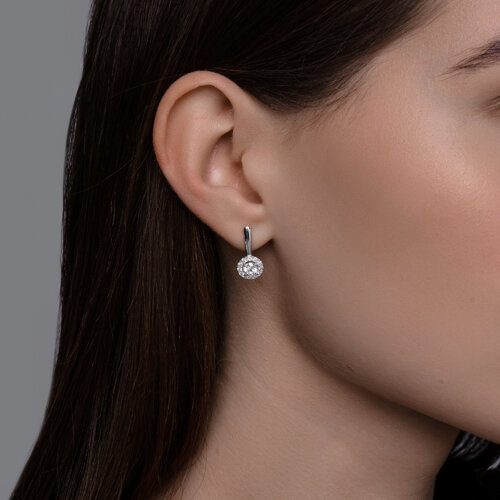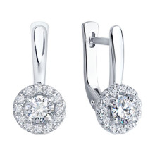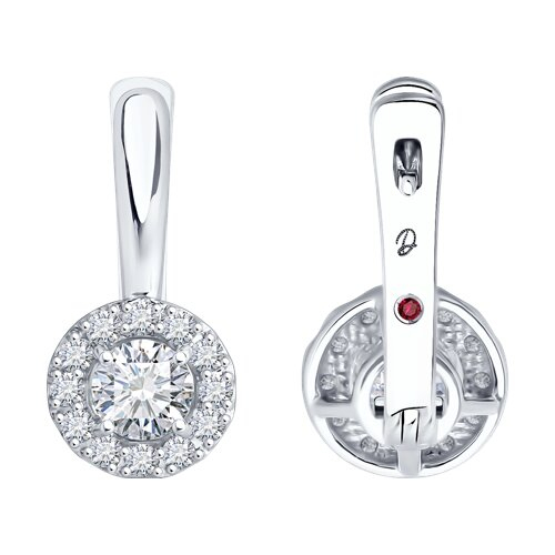 Серьги из белого золота с бриллиантом выращенным и рубином Diamant 52-220-02753-1