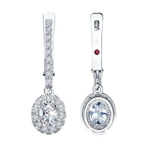 Серьги из белого золота с бриллиантом выращенным и рубином Diamant 52-221-02588-1