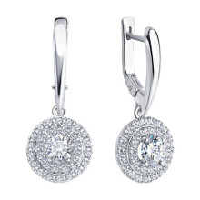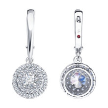 Серьги из белого золота с бриллиантом выращенным и рубином Diamant 52-221-02754-1