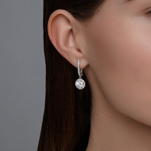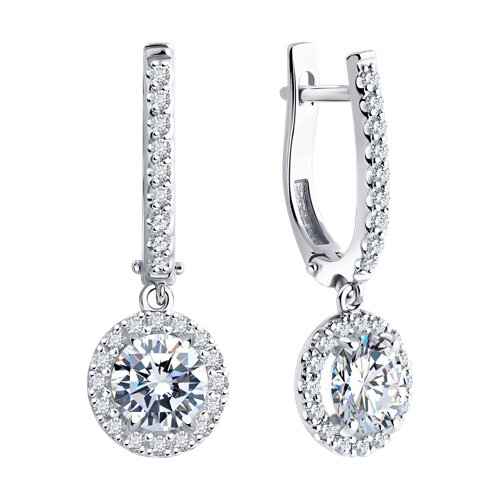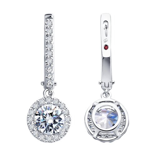 Серьги из белого золота с бриллиантом выращенным и рубином Diamant 52-221-02767-1