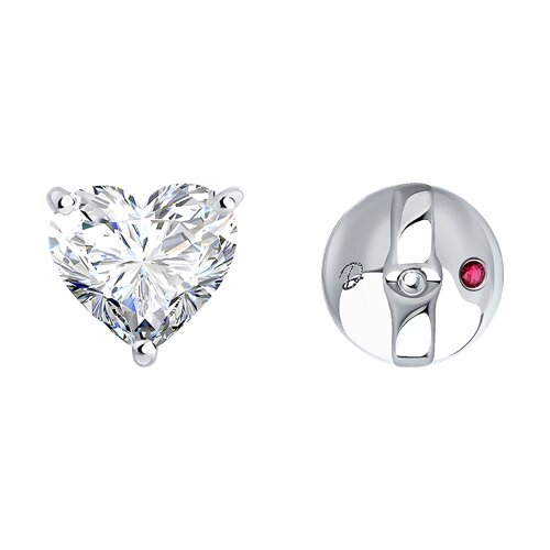 Серьги из белого золота с бриллиантом выращенным и рубином Diamant 52-222-02707-1