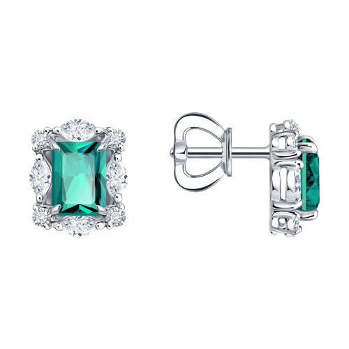 Серьги из белого золота с изумрудами и бриллиантами выращенными SOKOLOV 3020784-3-5