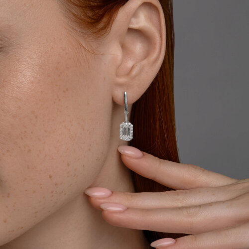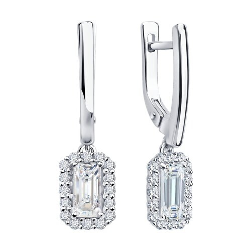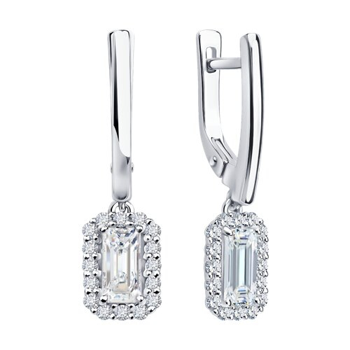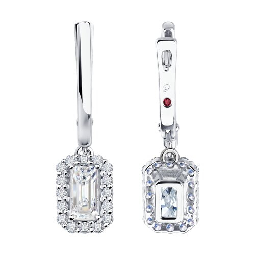 Серьги из белого золота с выращенными бриллиантами и рубином Diamant 52-221-02769-1