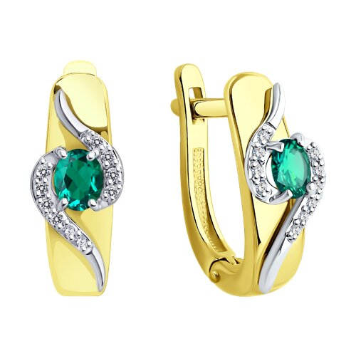 Серьги из комбинированного золота с бриллиантами и изумрудами SOKOLOV 3020399-2