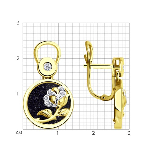 Серьги из желтого золота с бриллиантами и авантюриновое стекло SOKOLOV 1021237-2