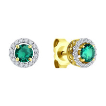Серьги из желтого золота с бриллиантами и изумрудами SOKOLOV 3020486