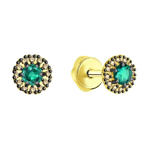 Серьги из желтого золота с бриллиантами и изумрудами SOKOLOV 3020515-2