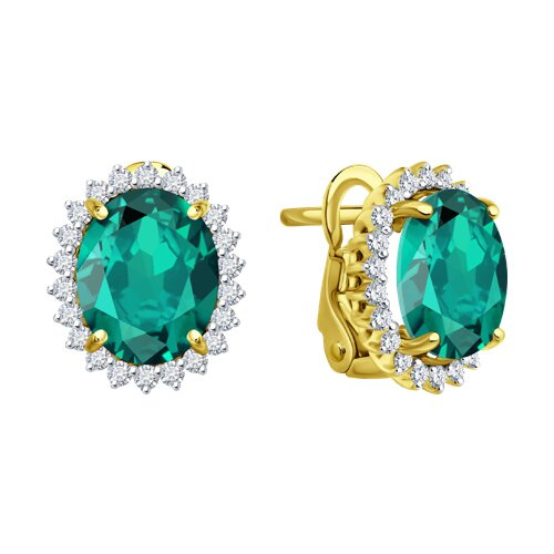 Серьги из желтого золота с бриллиантами и изумрудами SOKOLOV 3020648-2