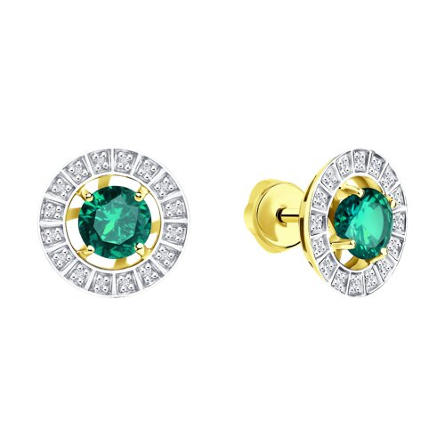 Серьги из желтого золота с бриллиантами и изумрудами SOKOLOV 3020715-2