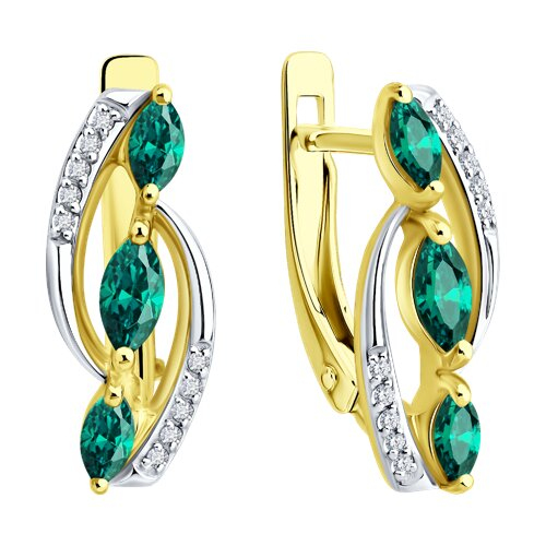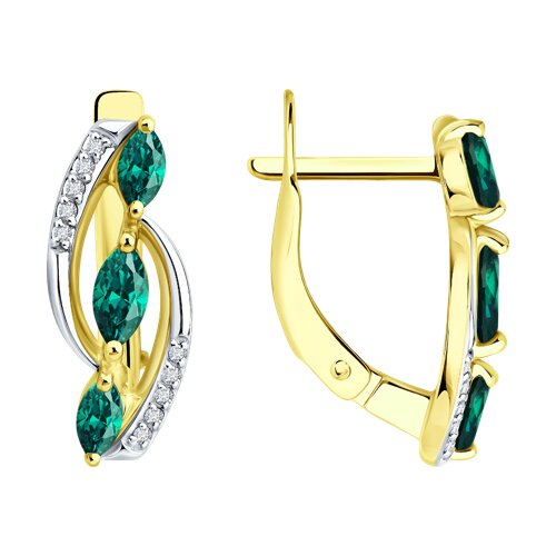 Серьги из желтого золота с бриллиантами и изумрудами SOKOLOV 3020733-2