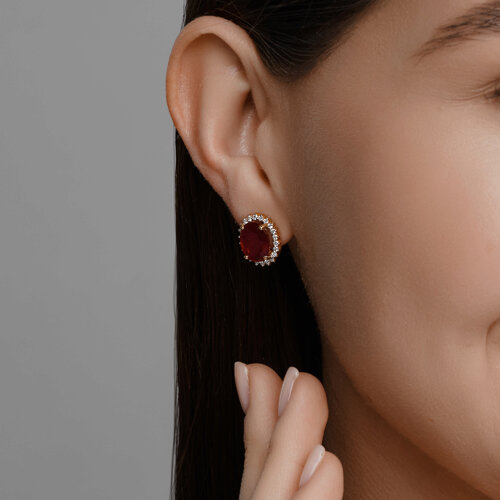Серьги из желтого золота с бриллиантами и рубинами SOKOLOV 4020756-2