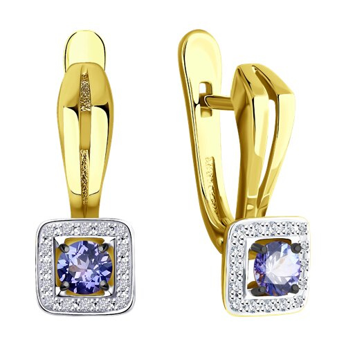 Серьги из желтого золота с бриллиантами и танзанитами SOKOLOV 6024079-2