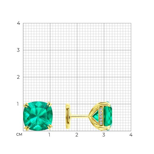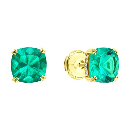 Серьги из желтого золота с бриллиантами выращенными и изумрудами г/т выращенными Колумбия SOKOLOV 3020687-2-5