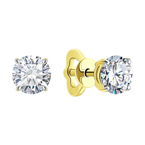 Серьги из желтого золота с бриллиантами выращенными SOKOLOV 9020107-2-5