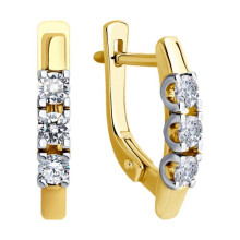 Серьги из желтого золота с бриллиантом выращенным и рубином Diamant 53-220-02495-1